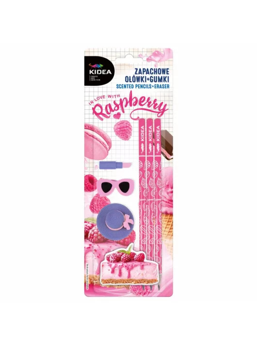 Tartalma: 3 db HB ceruza és 3 db illatos, különböző formájú radír.